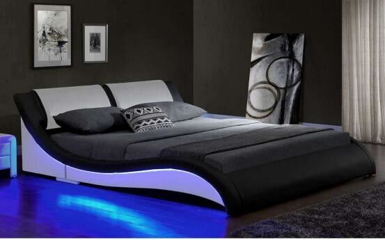 Gepolstertes Faux-ledernes Plattform-Bett mit LED-Licht-Kopfende, dieses einzigartige Bett ist der Fokus im Schlafzimmer wenn die Freunde, die vorbei kommen. Dieses Bett holt reichen modernen Lebensstil zum Schlafzimmer, anbietet nicht nur großen Spaß für Ihre Schlafenszeit aber hinzufügt auch Höhepunkte Schlafzimmer.