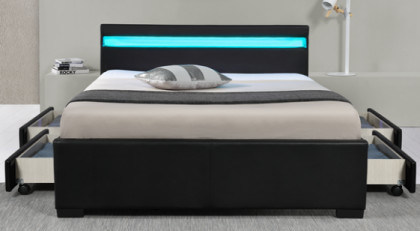 | Name: | Vollbettrahmen mit LED-Ladestation Speicherkopf und Schubladen | Farbe: | Schwarz |